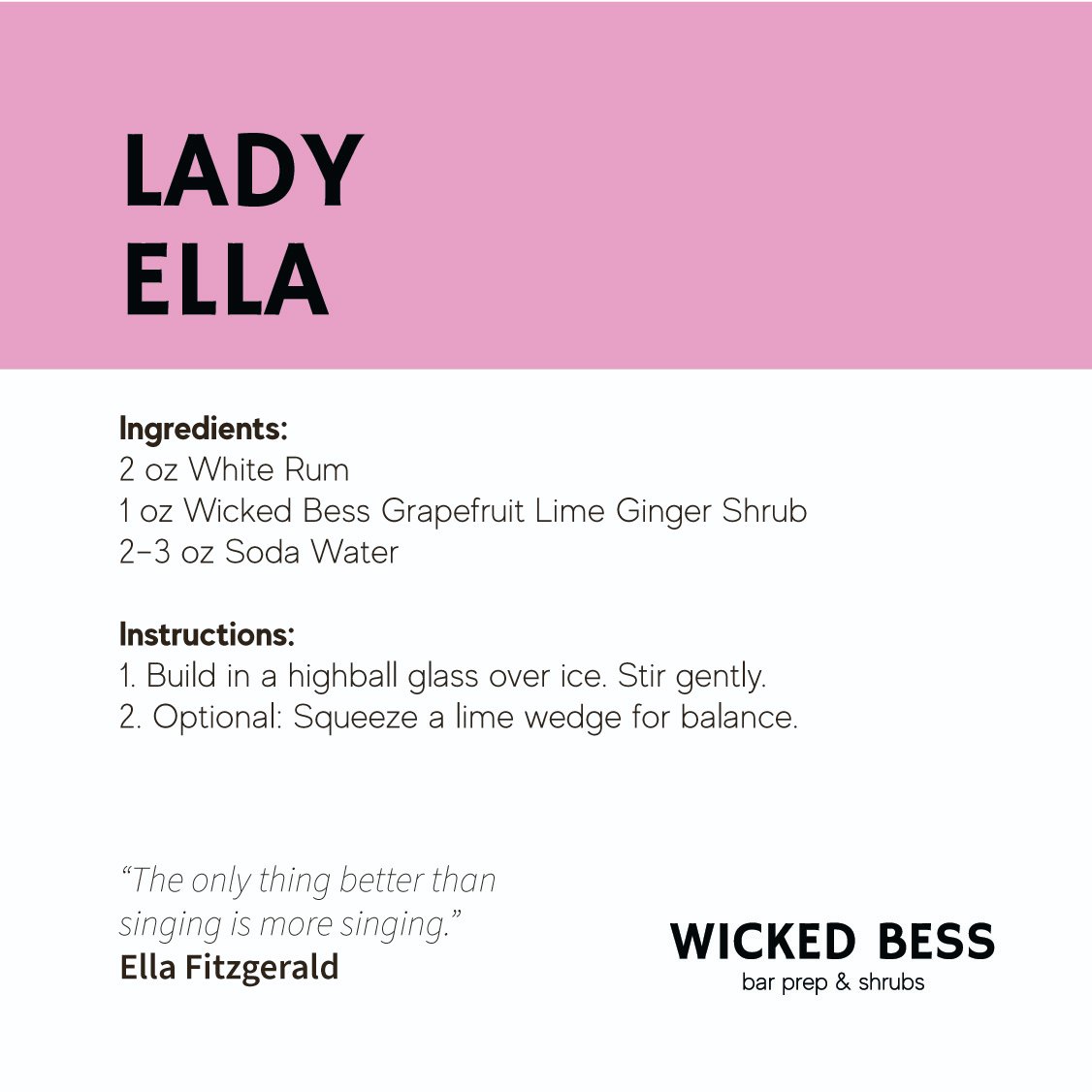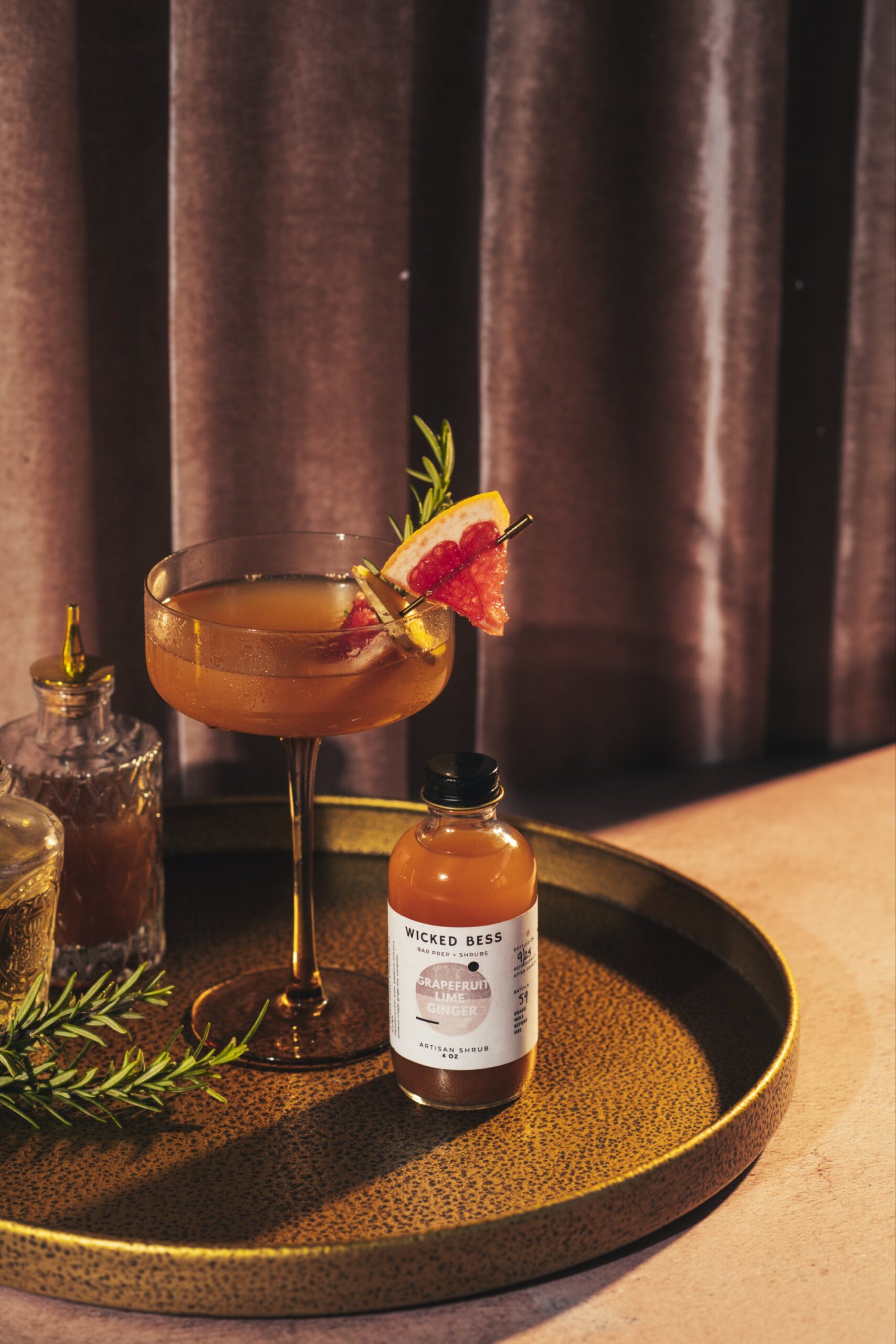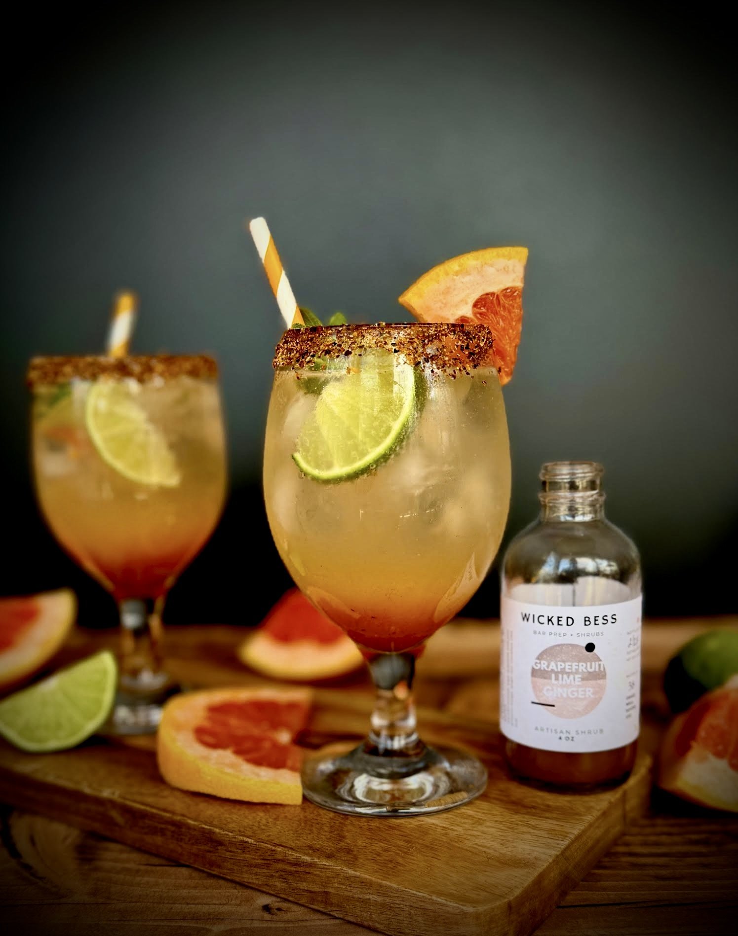 Ingredients: fresh squeezed grapefruit and lime juice, ginger root, cinnamon, pure cane sugar, prosecco vinegar, water, citric acid
